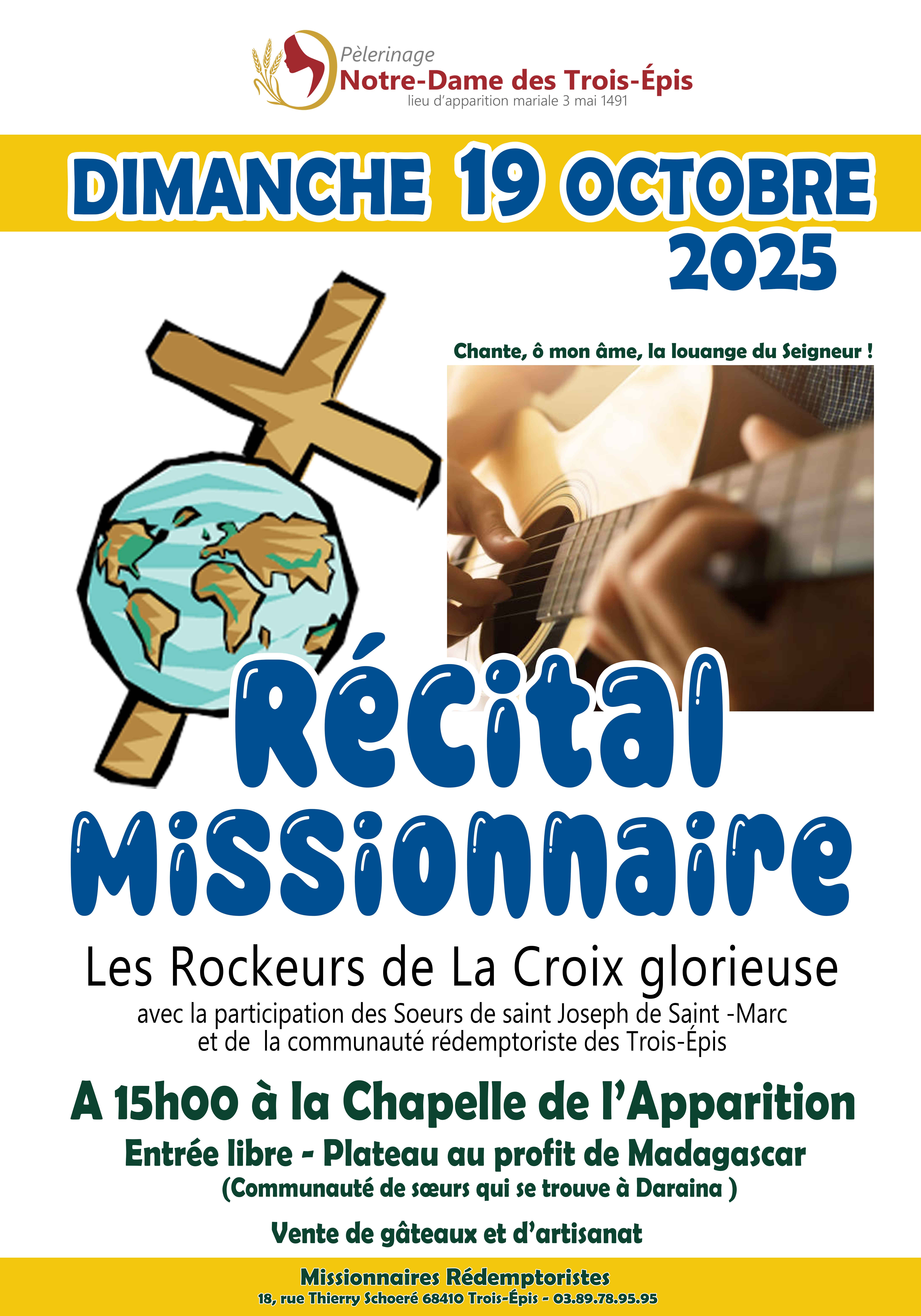 15 h 00 à 17 h 00: Célébration Mariale avec Salut au Saint Sacrement suivie de l’adoration silencieuse (à la Chapelle)